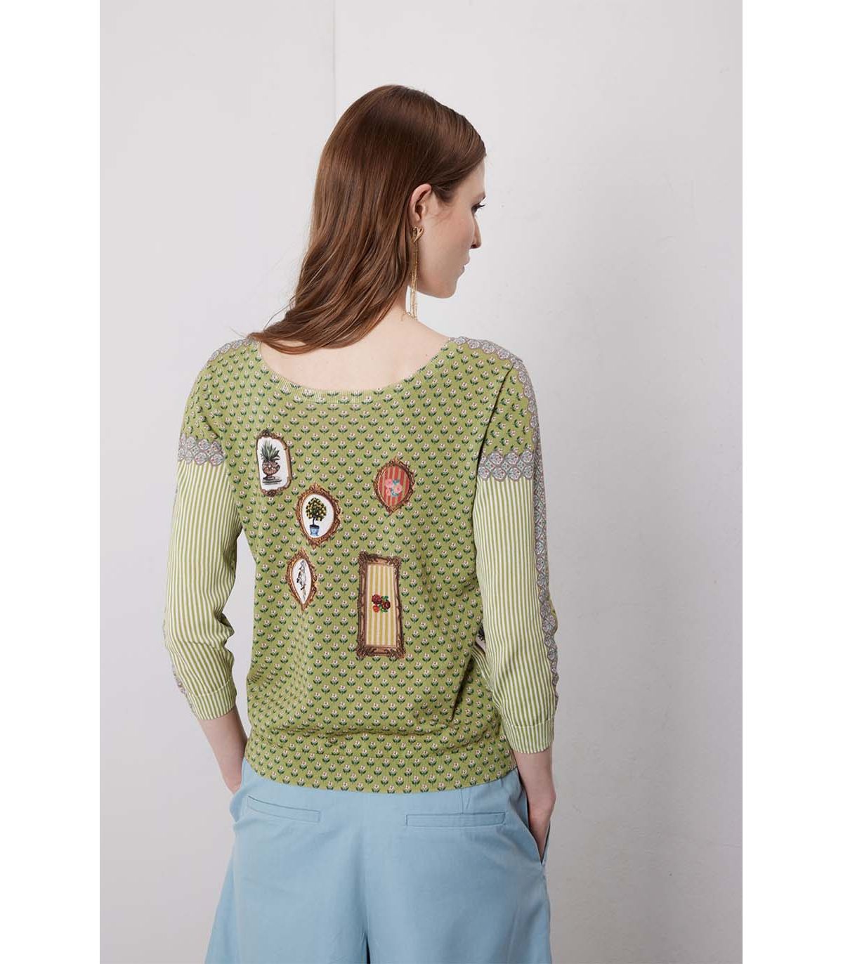 Crew-neck sweater with 3/4 sleeves in High Twist Cotton, featuring a bold Country print.