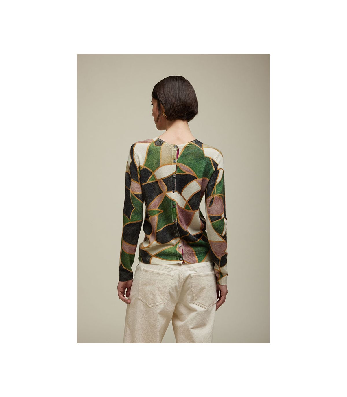 - double use cardigan: front and back have different prints and they're interchangable.