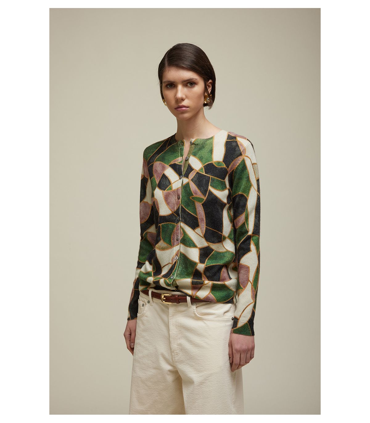 - Soft cashmere wool crewneck cardigan