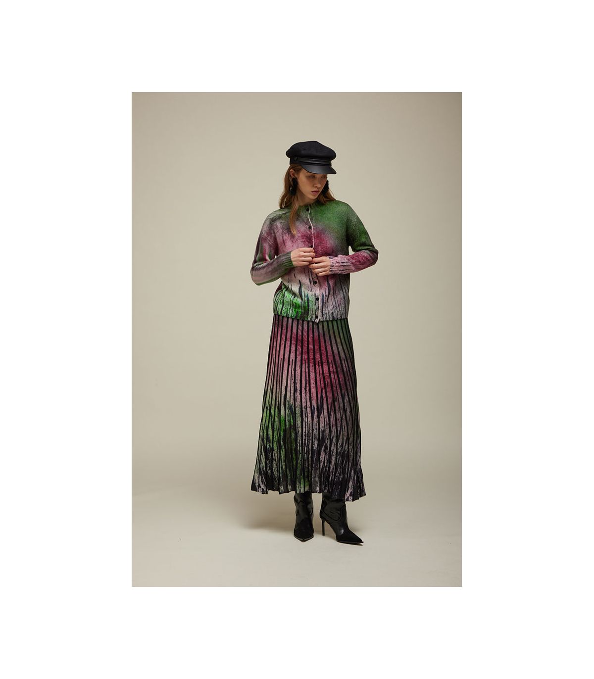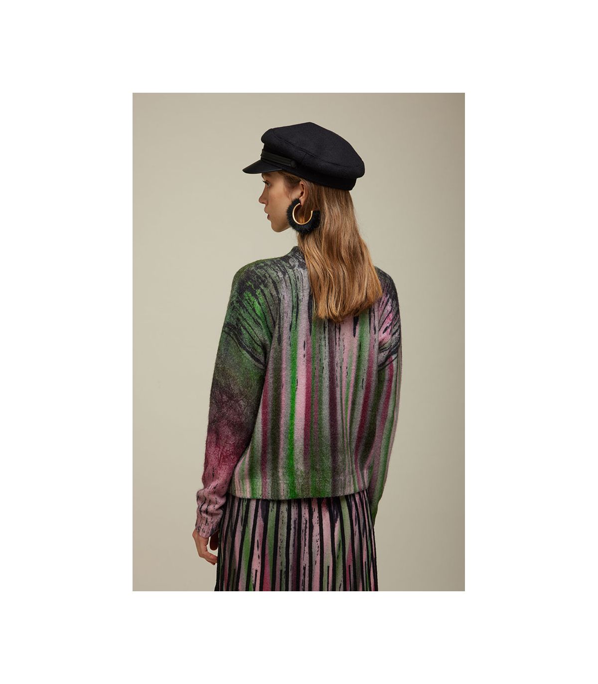 - double use cardigan: front and back have different prints and they're interchangable
