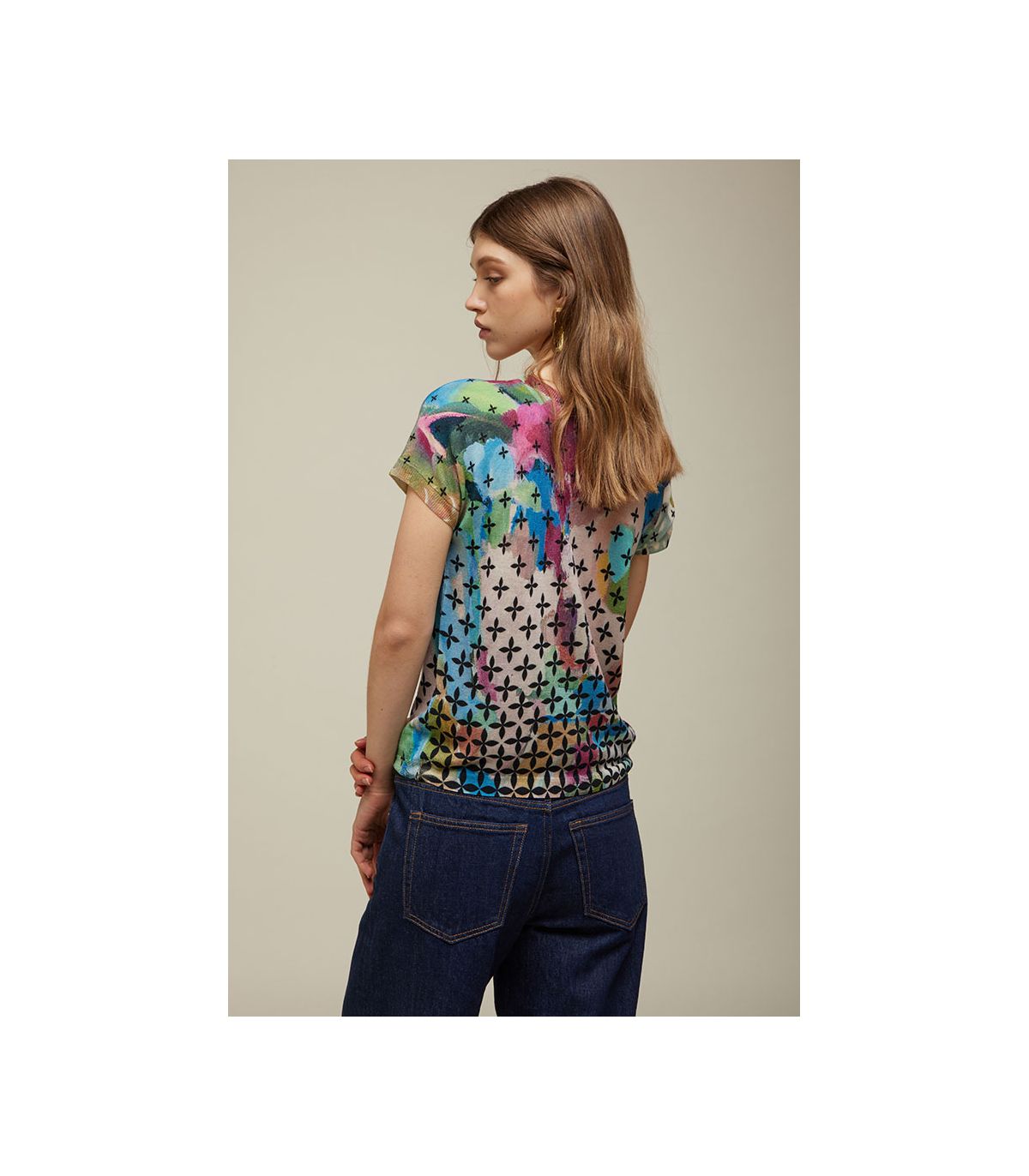 - double use sweater: front and back have different prints and they're interchangable.