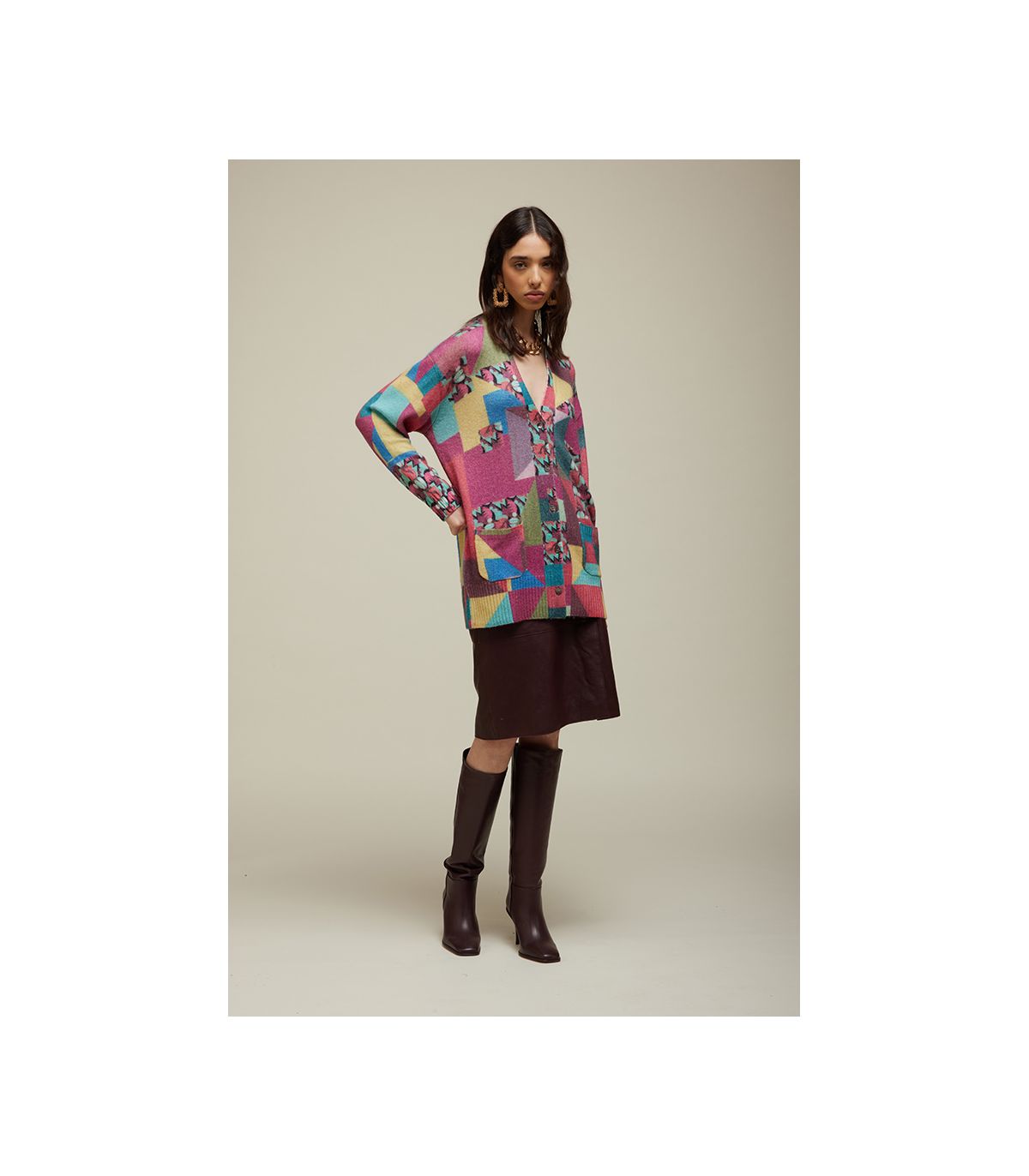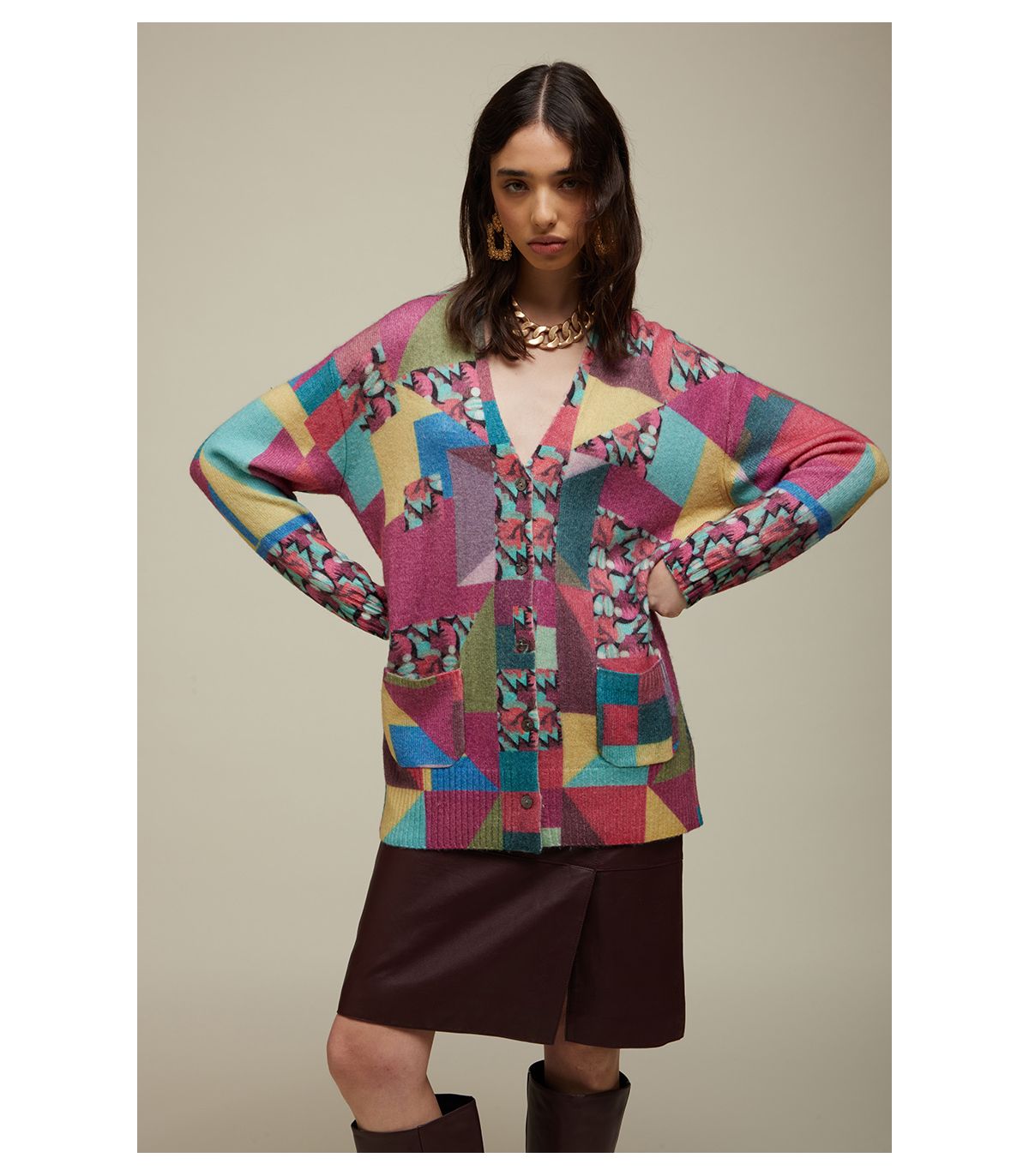 - Alpaca blend V neck cardigan