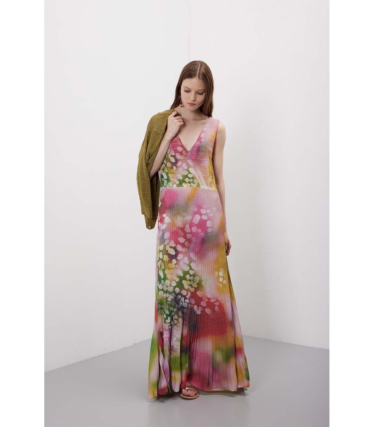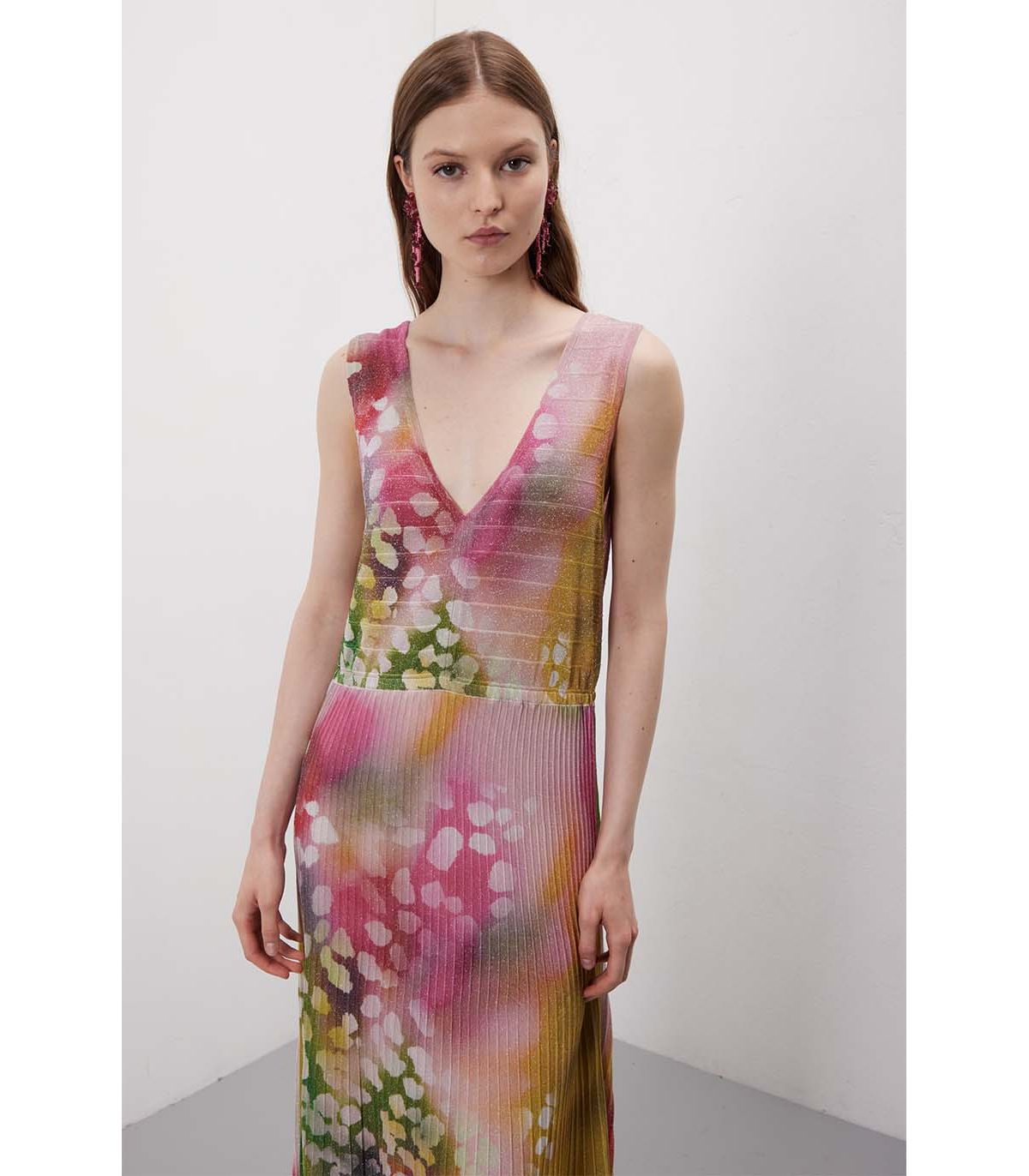 Abito plissè lungo in pattern Shaded
