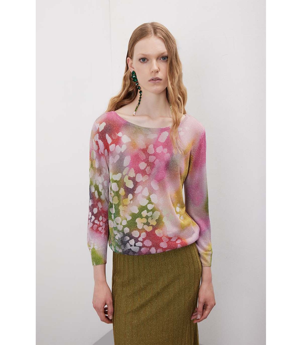 Pull girocollo double use in viscosa e lurex con effetto sfumato