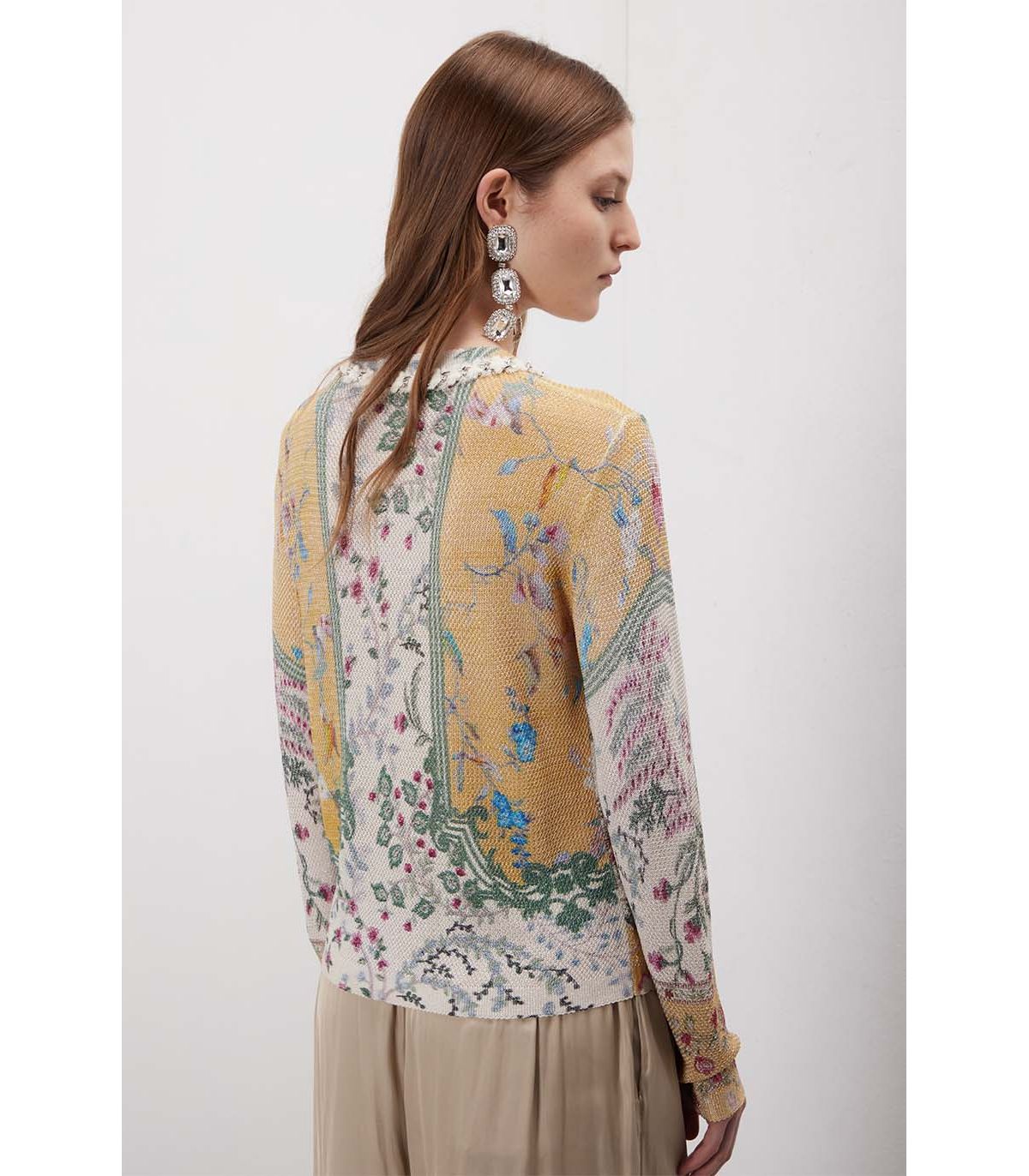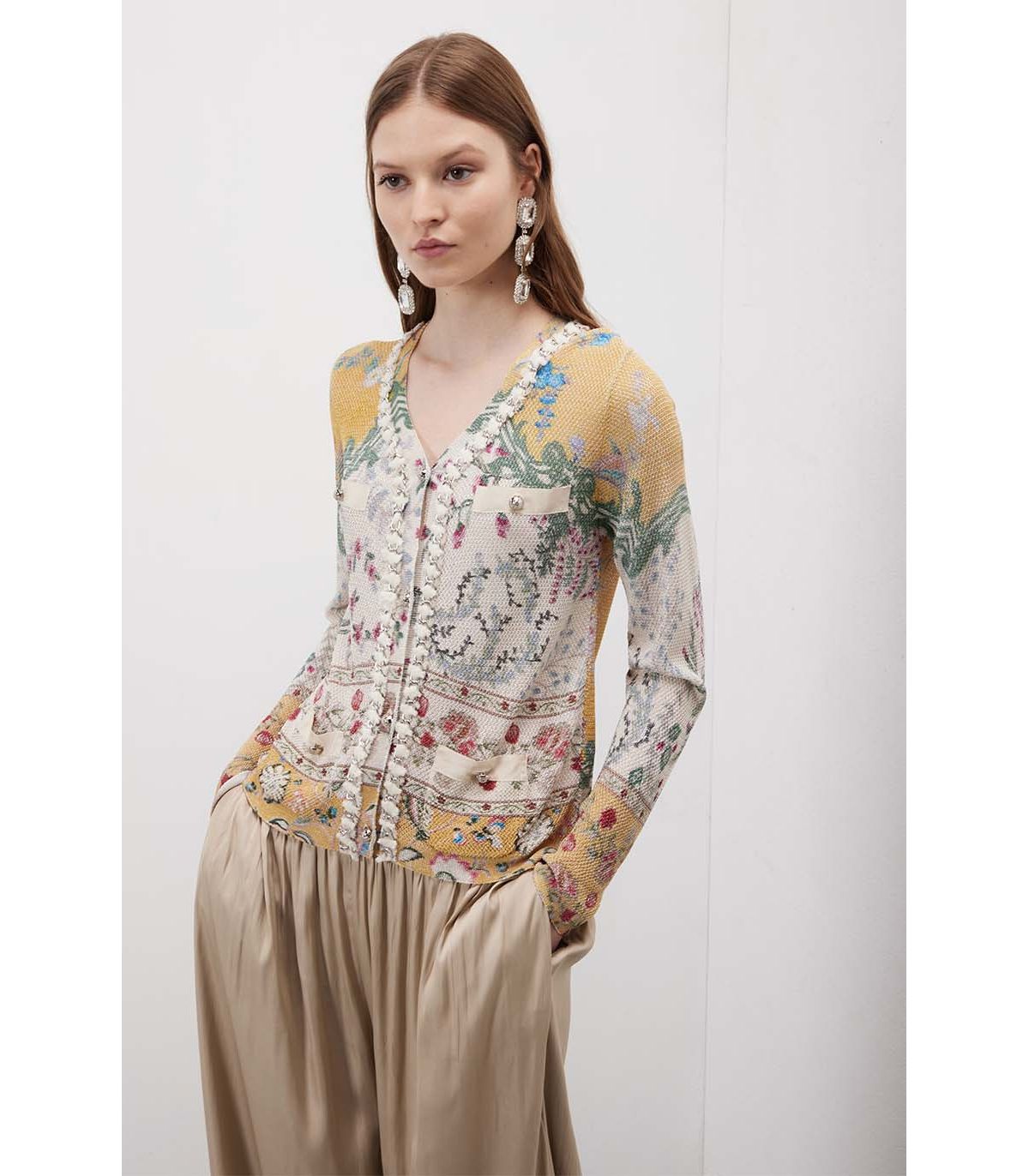 Linee pulite e costruzione morbida dialogano con il motivo Wallpaper, che valorizza la superficie con carattere discreto. La viscosa con lurex dona fluidità e una luminosità sottile, mantenendo equilibrio tra struttura e leggerezza. Una giacca dal taglio deciso ma naturale, per uno stile rilassato e contemporaneo.
