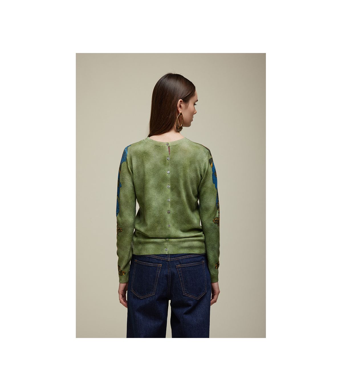 Un cardigan che unisce pregio e femminilità. Realizzato in puro cashmere, con girocollo e maniche lunghe, è impreziosito dalla Stampa Fiori Blu digitale, delicata e raffinata. Il design Double Use lo rende trasformabile: davanti e retro presentano motivi diversi, mentre l’abbottonatura reversibile permette di indossarlo sia sul fronte che sul retro. Con la sua vestibilità regolare, è un capo versatile e sofisticato, perfetto per dare luce a ogni look.