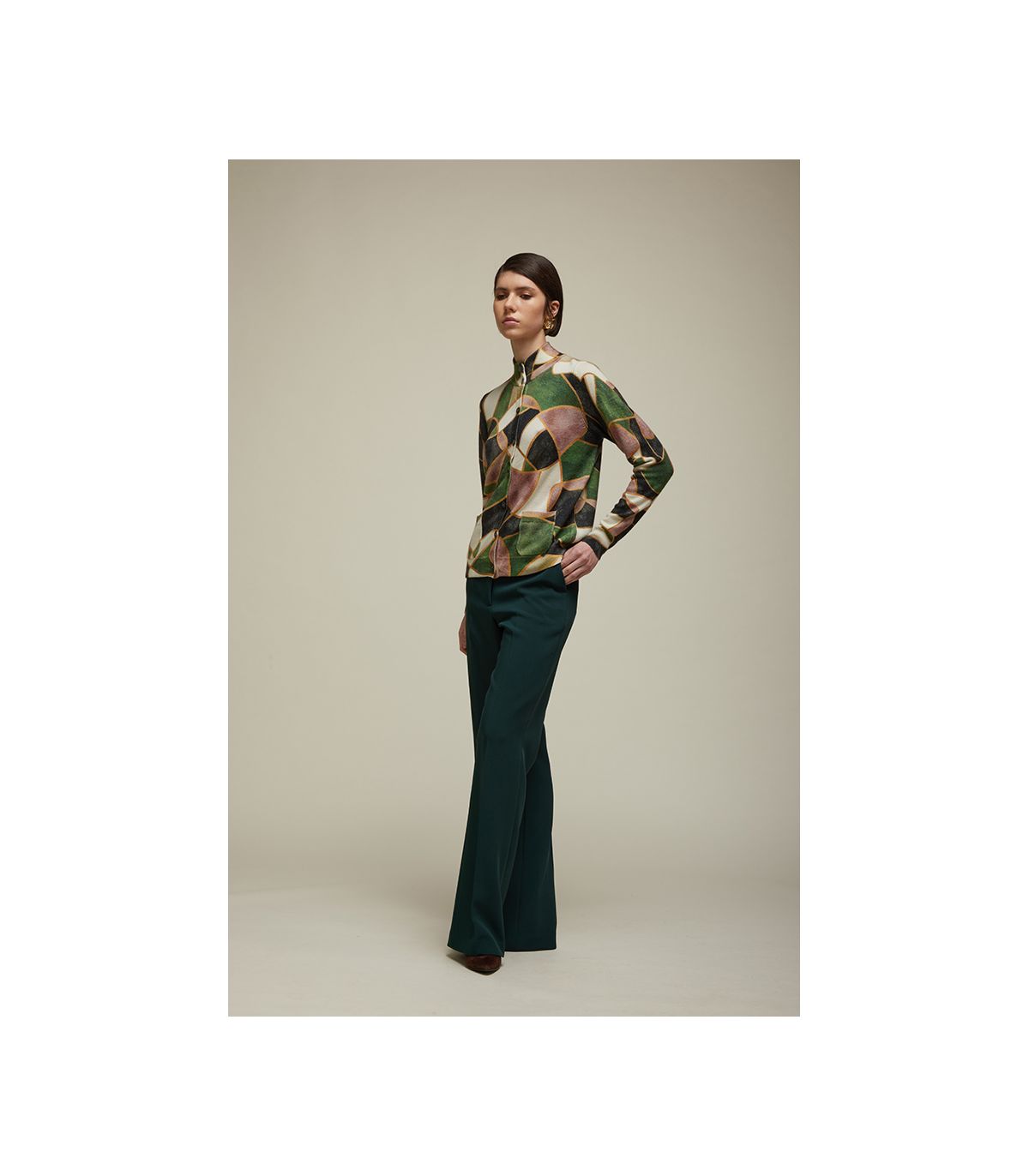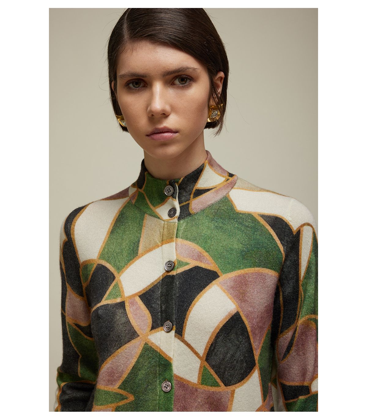 Una giacca in maglia che unisce raffinatezza e carattere grafico. Realizzata in puro cashmere, con abbottonatura sul davanti, due tasche e maniche lunghe, offre comfort e praticità. La Stampa Mosaico digitale aggiunge un tocco artistico e contemporaneo, trasformando il capo in un elemento distintivo e versatile. Con la sua vestibilità regolare, è perfetta per completare look quotidiani con un dettaglio ricercato.