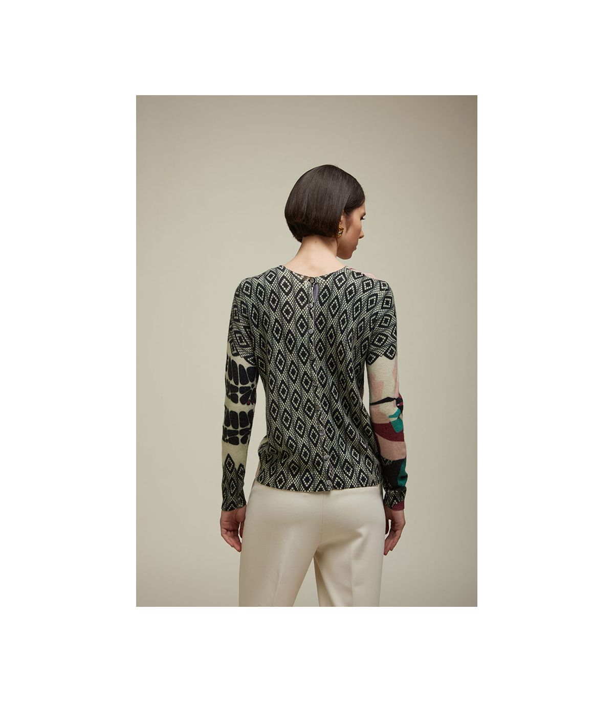 Cardigan Girocollo in Cashmere con Stampa Lace Double Use