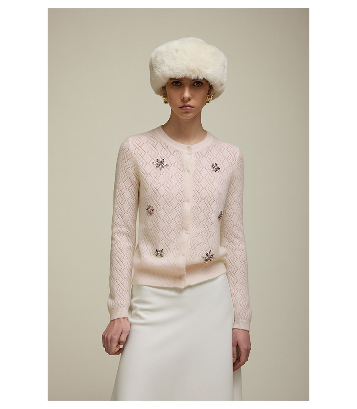 Cardigan in Misto Alpaca con Lavorazione Traforata e Strass Applicati a Mano