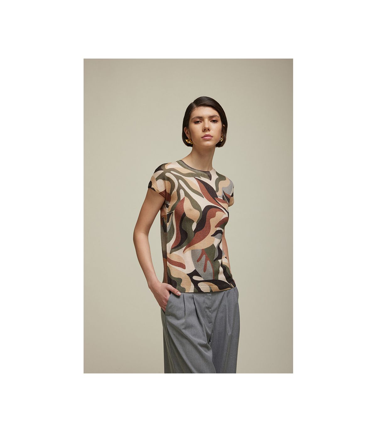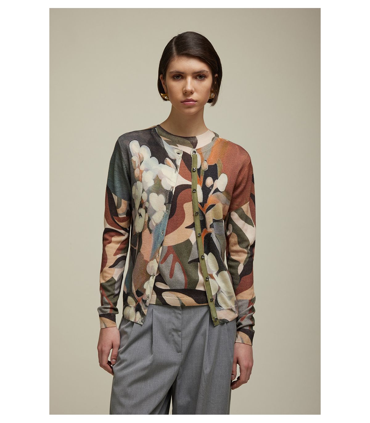 Twinset in Lana Merino Extrafine con Cardigan e Maglia Double Use Pattern Camouflage