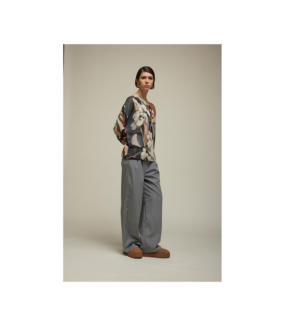 Un pull che non passa inosservato. In 100% Lana Merino Extrafine, con linea oversize e maniche lunghe, è pensato per chi ama comfort e stile allo stesso tempo. Il Pattern Camouflage in stampa digitale regala un effetto grafico deciso, perfetto per outfit dal carattere forte. Grazie al design Double Use, il davanti e il retro mostrano motivi diversi: due look in un unico capo, da cambiare a seconda dell’umore o dell’occasione.