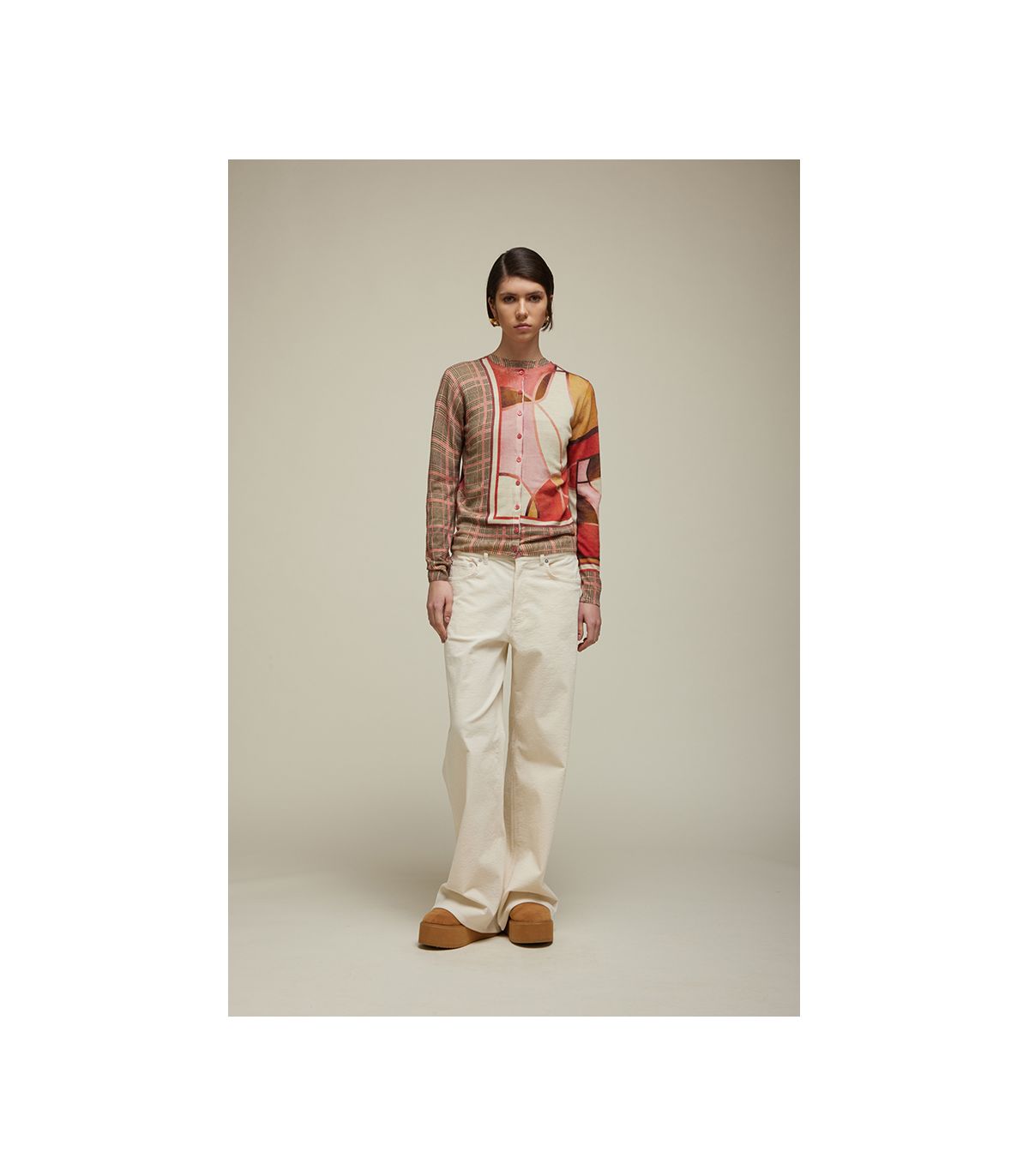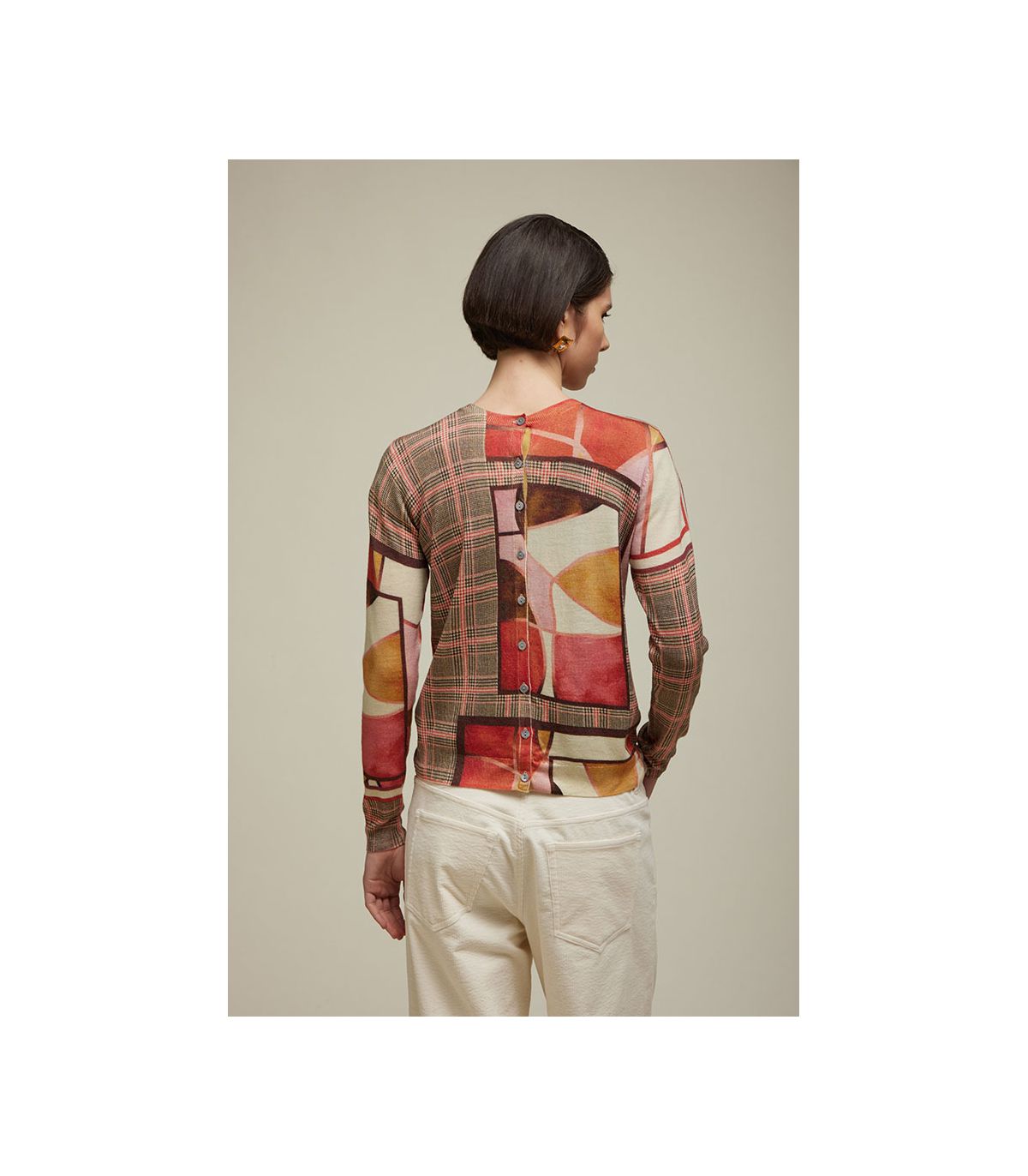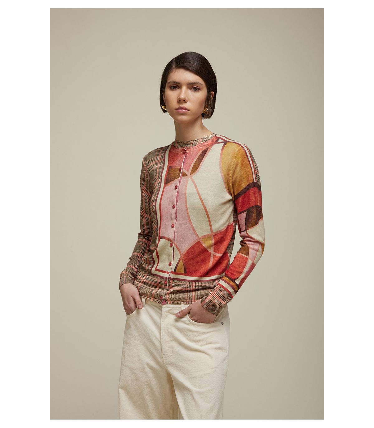 Cardigan Girocollo in Lana Merino Extrafine con Stampa Principe di Galles Double Use