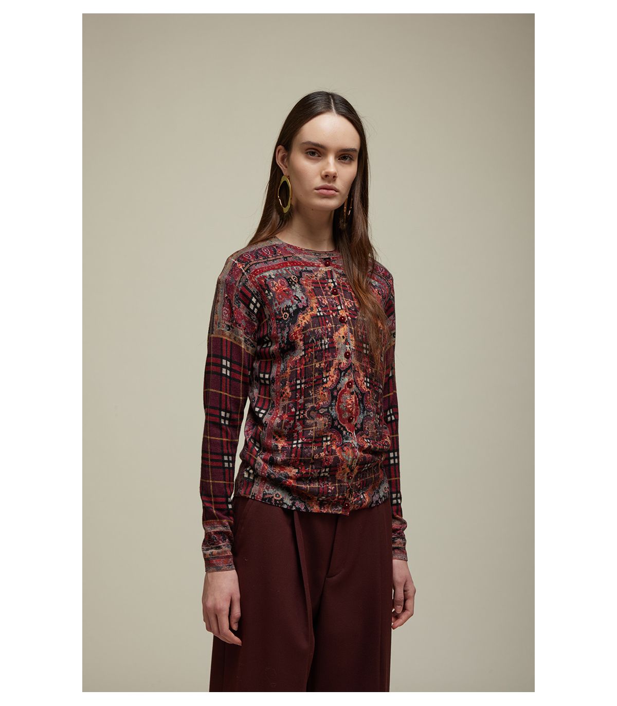 Cardigan Girocollo in Lana Merino Extrafine con Stampa Carpet Double Use