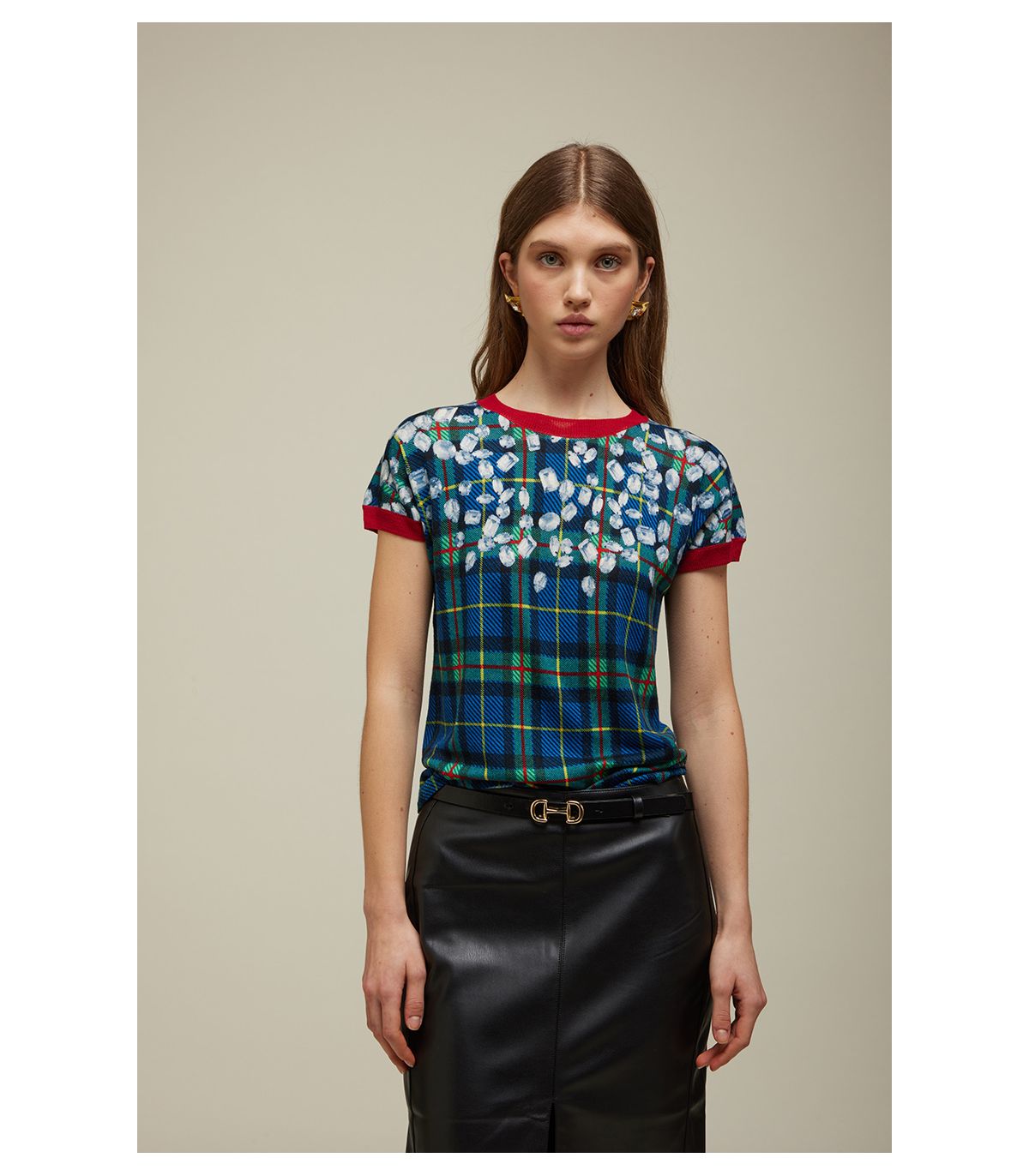 Maglia kimono a manica corta in 100% Lana Merino Extrafine, leggera e raffinata. Il design Double Use consente di indossarla Fronte o Retro, svelando due varianti della Stampa Digitale Tartan, che reinterpreta un grande classico con un twist moderno. Con la sua Vestibilità Regolare, è un capo versatile e contemporaneo, ideale per dare carattere anche agli outfit più essenziali.