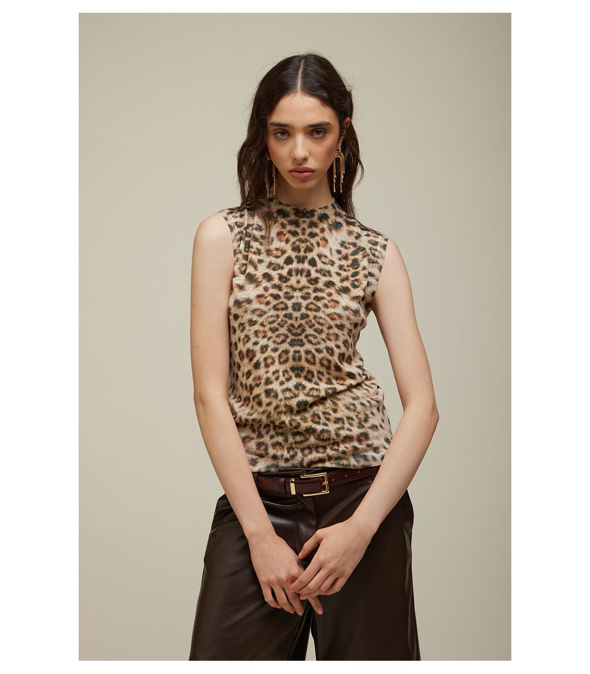 Maglia lupetto senza maniche reversibile con doppia stampa digitale Animalier
