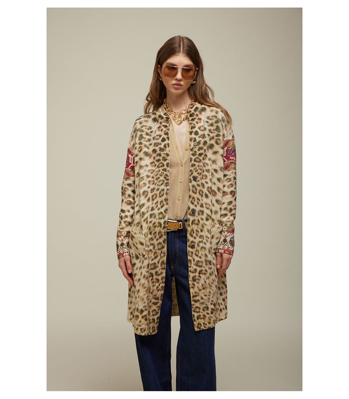Cappotto in maglia con stampa digitale Animalier