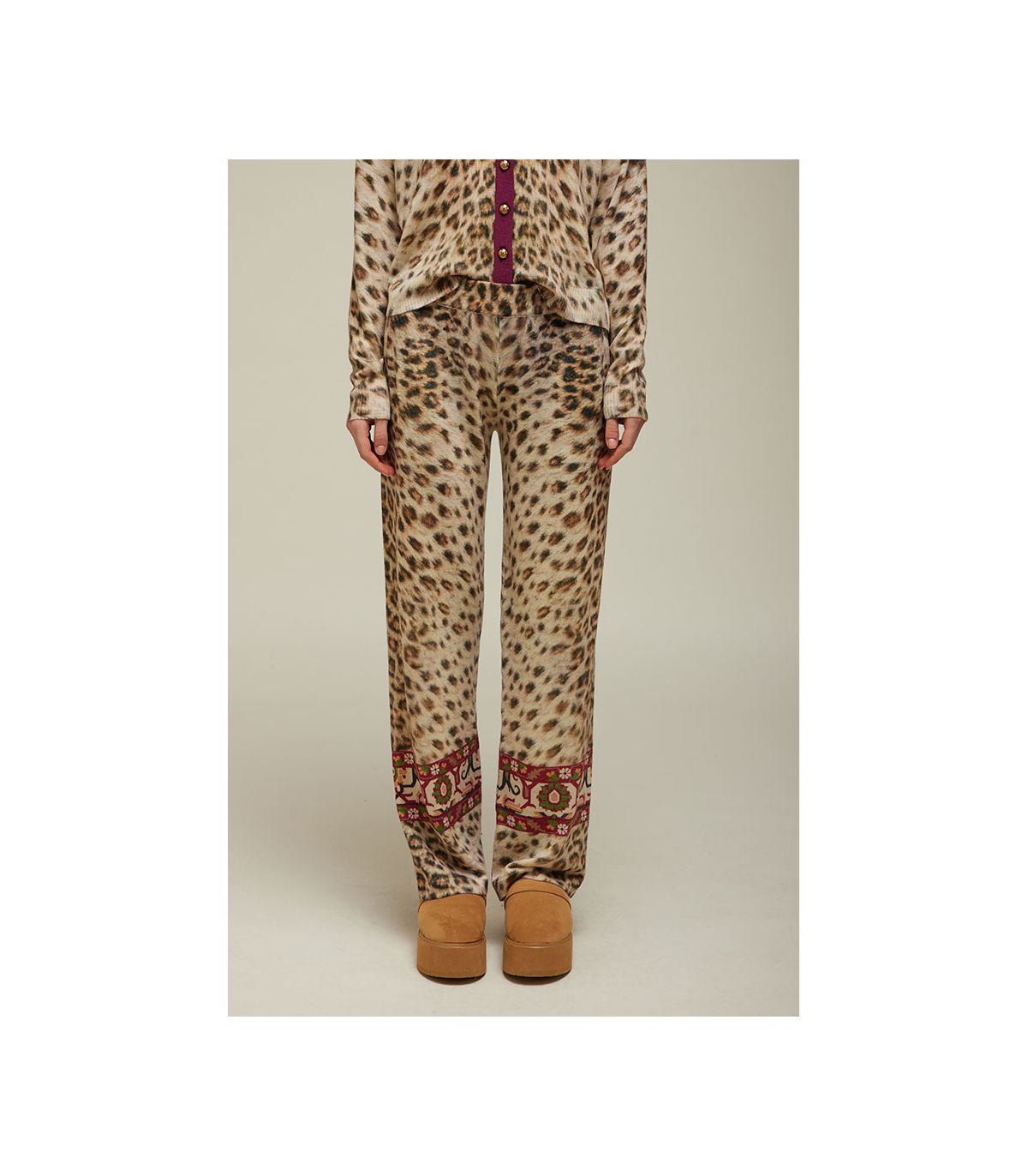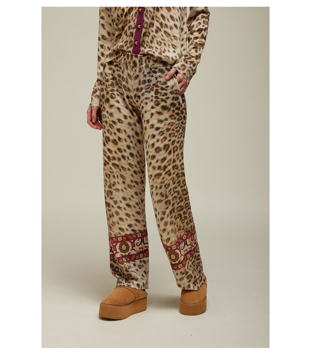 Pantaloni in maglia con stampa digitale Animalier e cinturino elastico