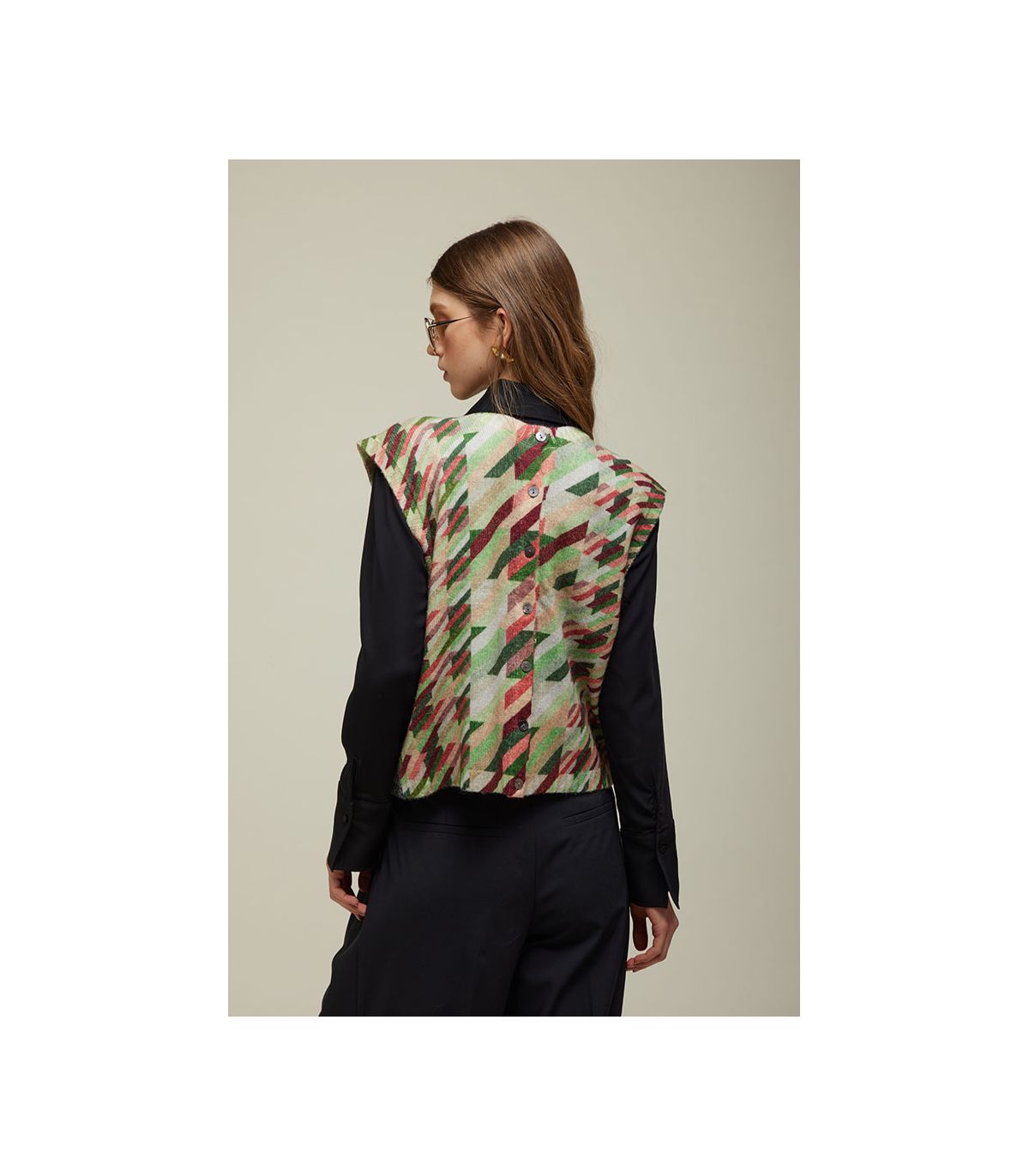 Gilet reversibile con doppia stampa digitale Pied De Poule e abbottonatura su entrambi i lati