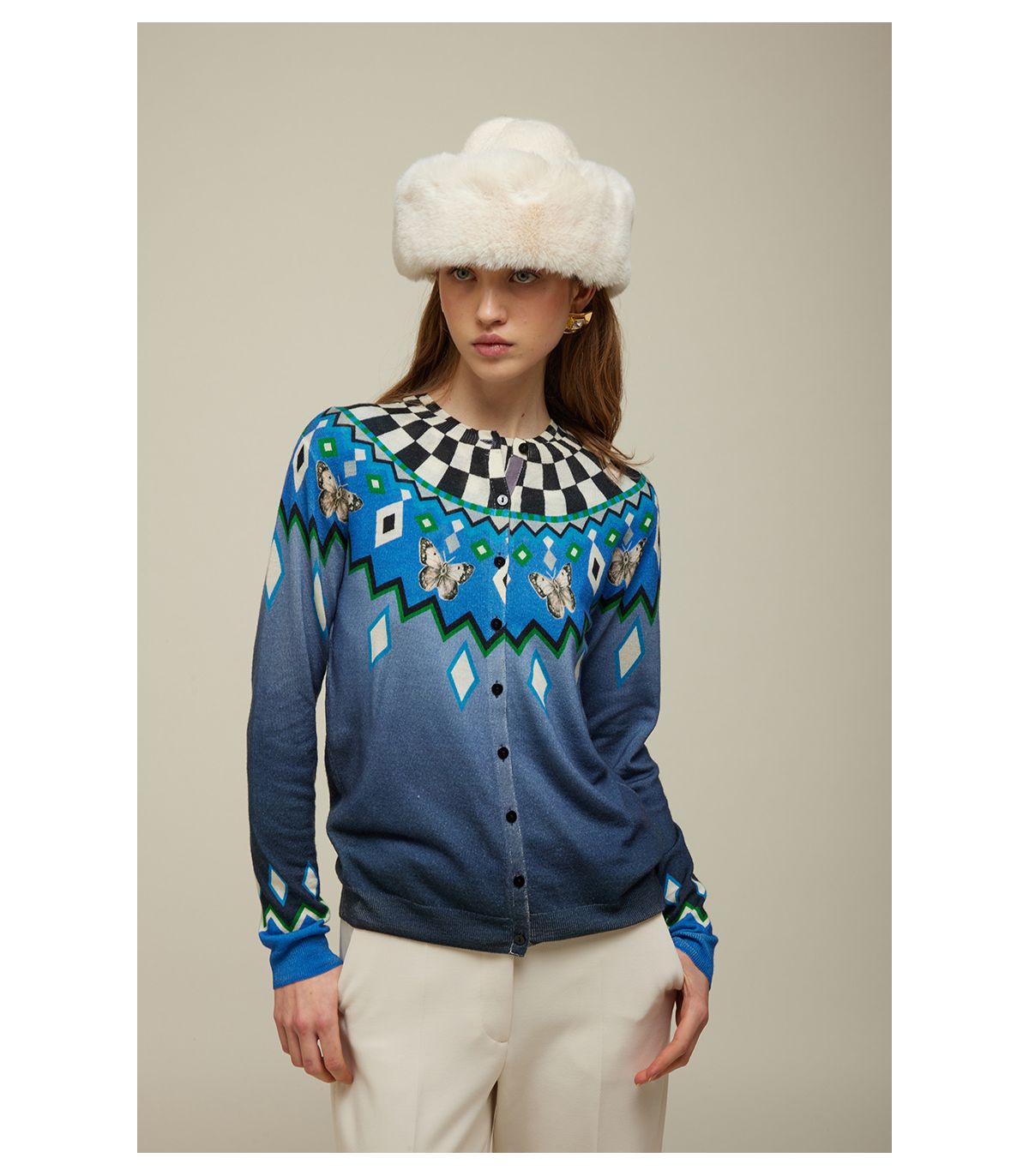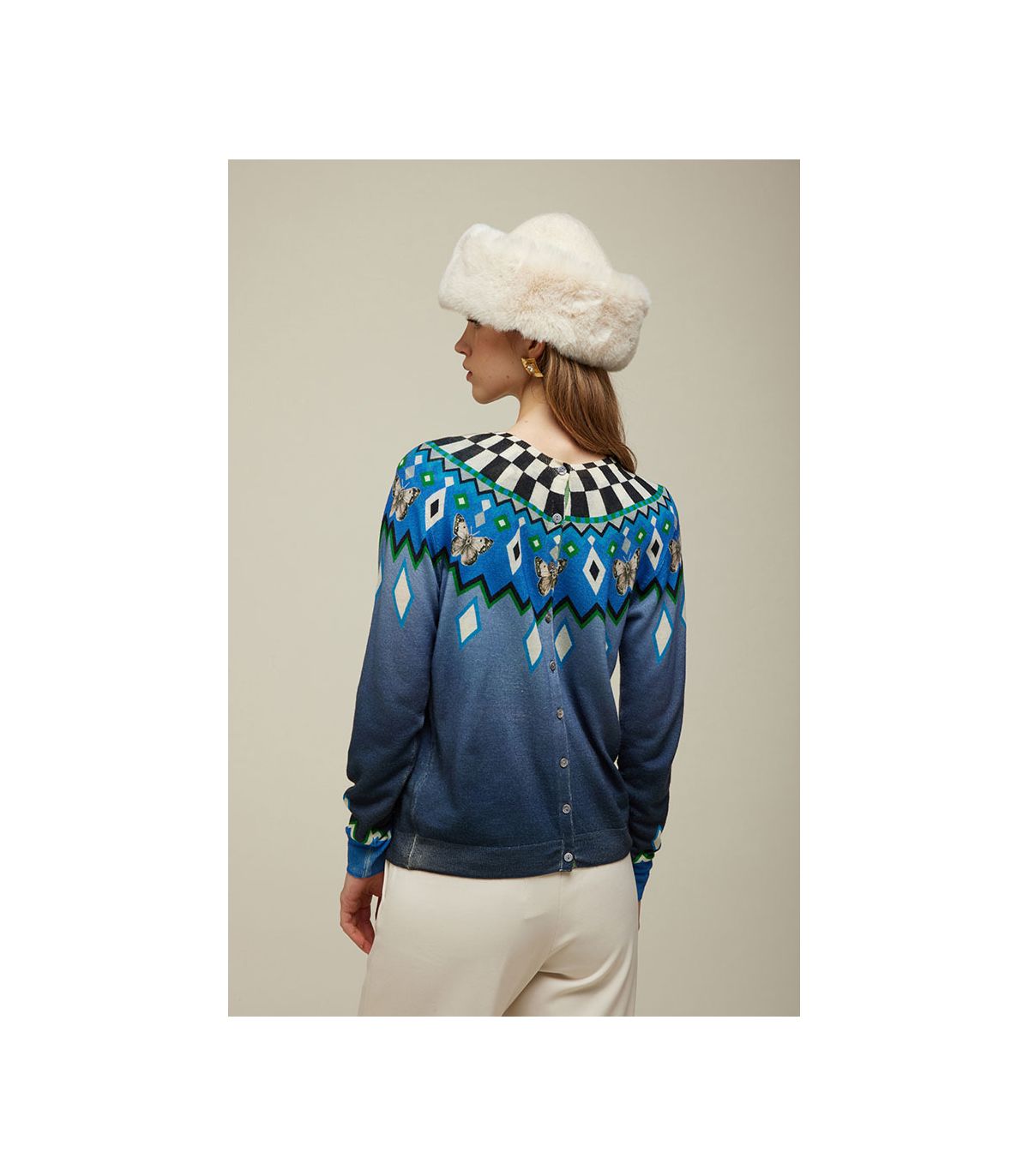 Cardigan reversibile con doppia fantasia norvegese e abbottonatura su entrambi i lati