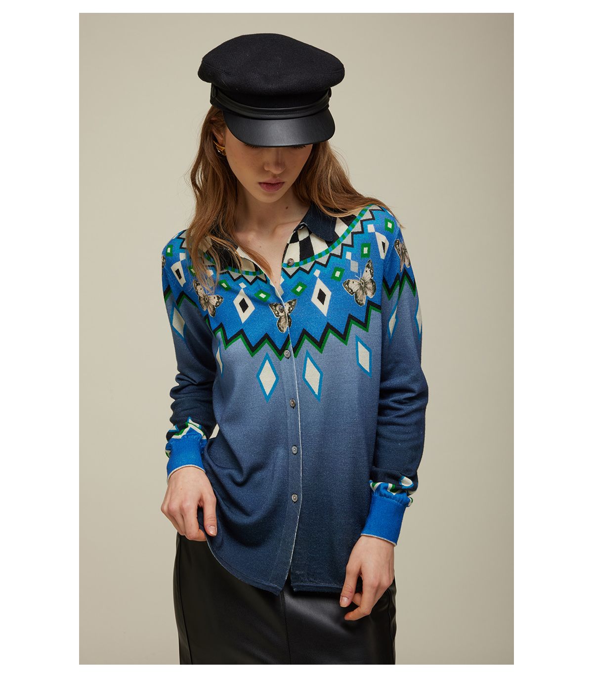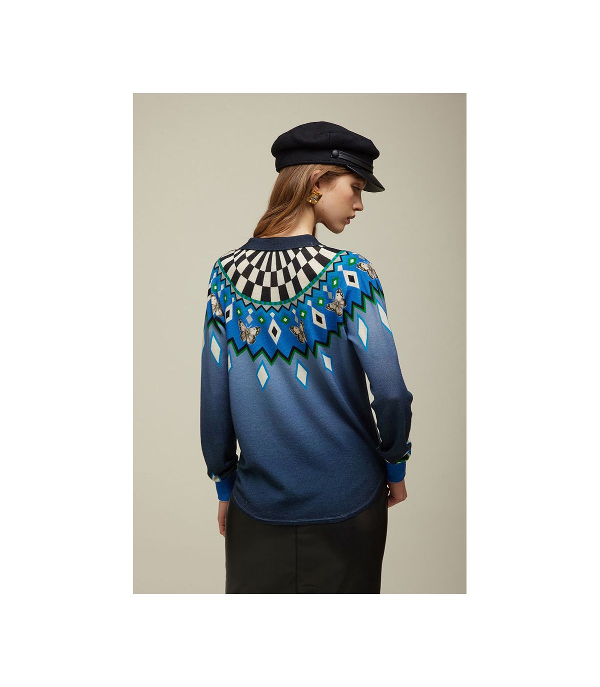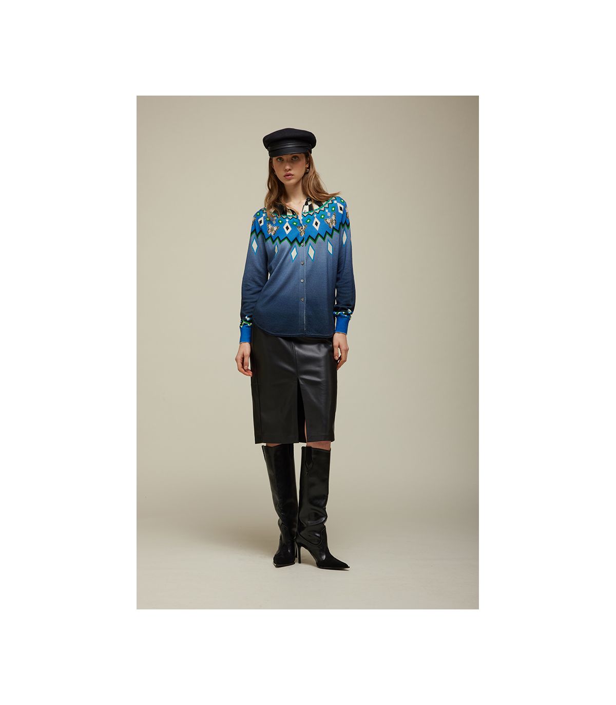 Camicia in 100% lana merino extrafine, morbida e calda, con maniche lunghe e taglio pulito. La stampa digitale norvegese, pattern iconico della stagione invernale, viene rivisitata in chiave moderna per un look grafico e sofisticato. Con la sua vestibilità regolare, è un capo versatile che porta il fascino della tradizione nel guardaroba contemporaneo.