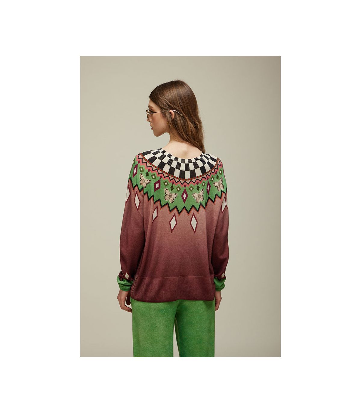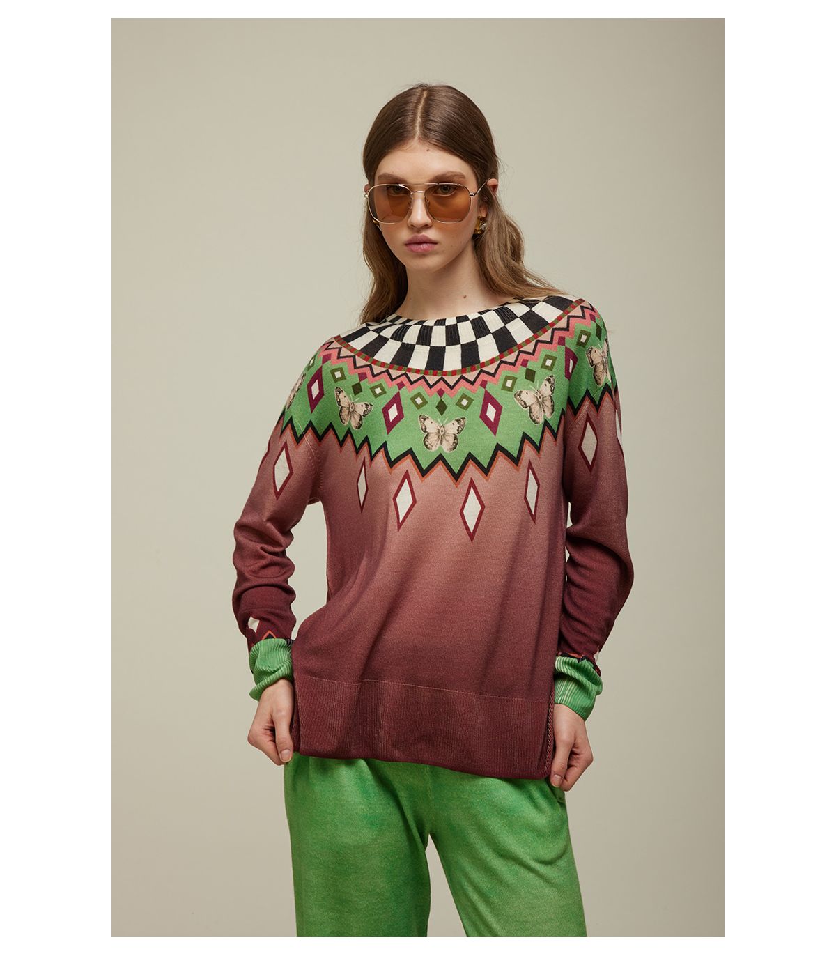 Pull Scollo a barca Over Stampa Norvegese Double Use