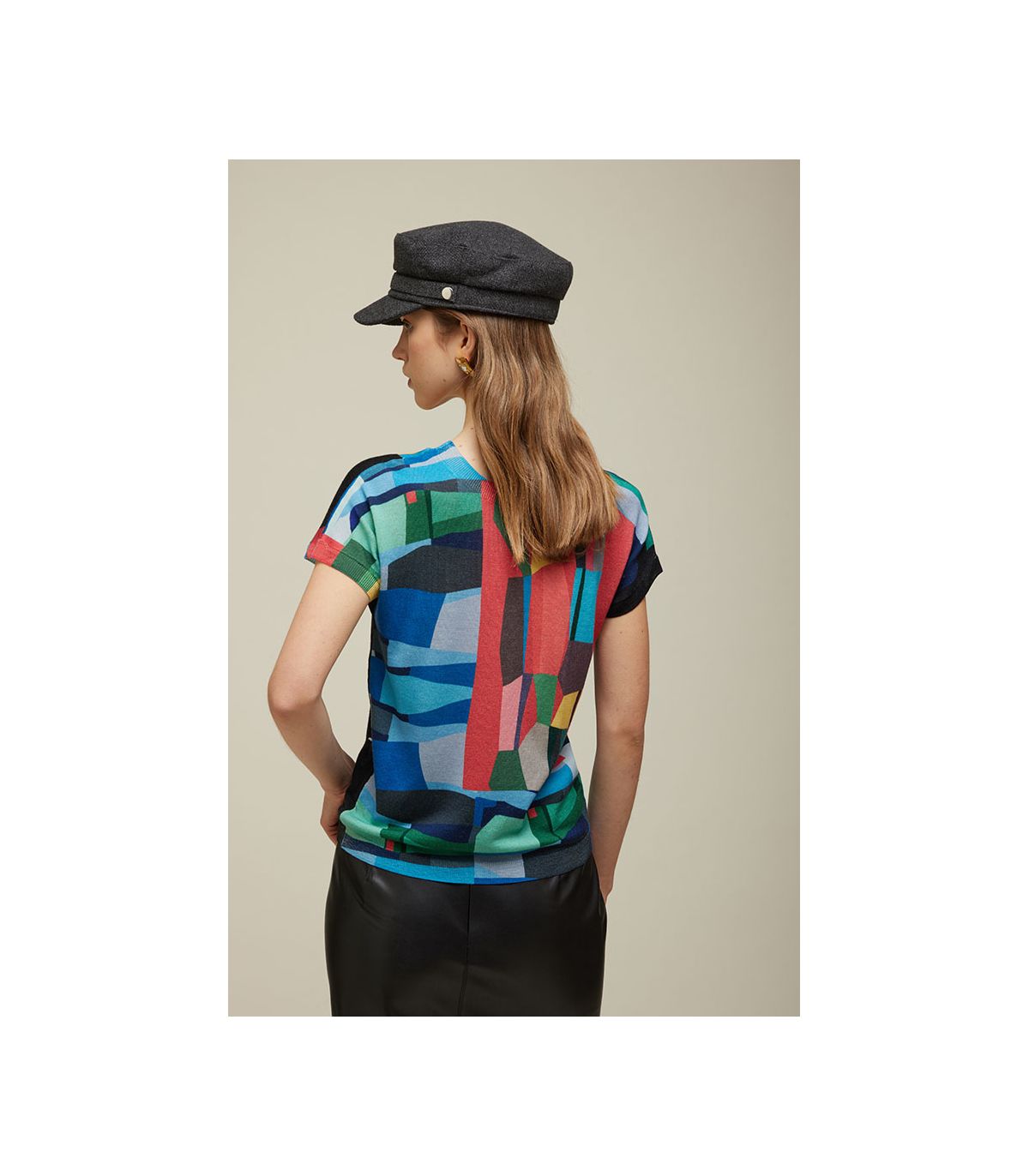 Maglia kimono manica corta reversibile con doppia fantasia digitale Pop
