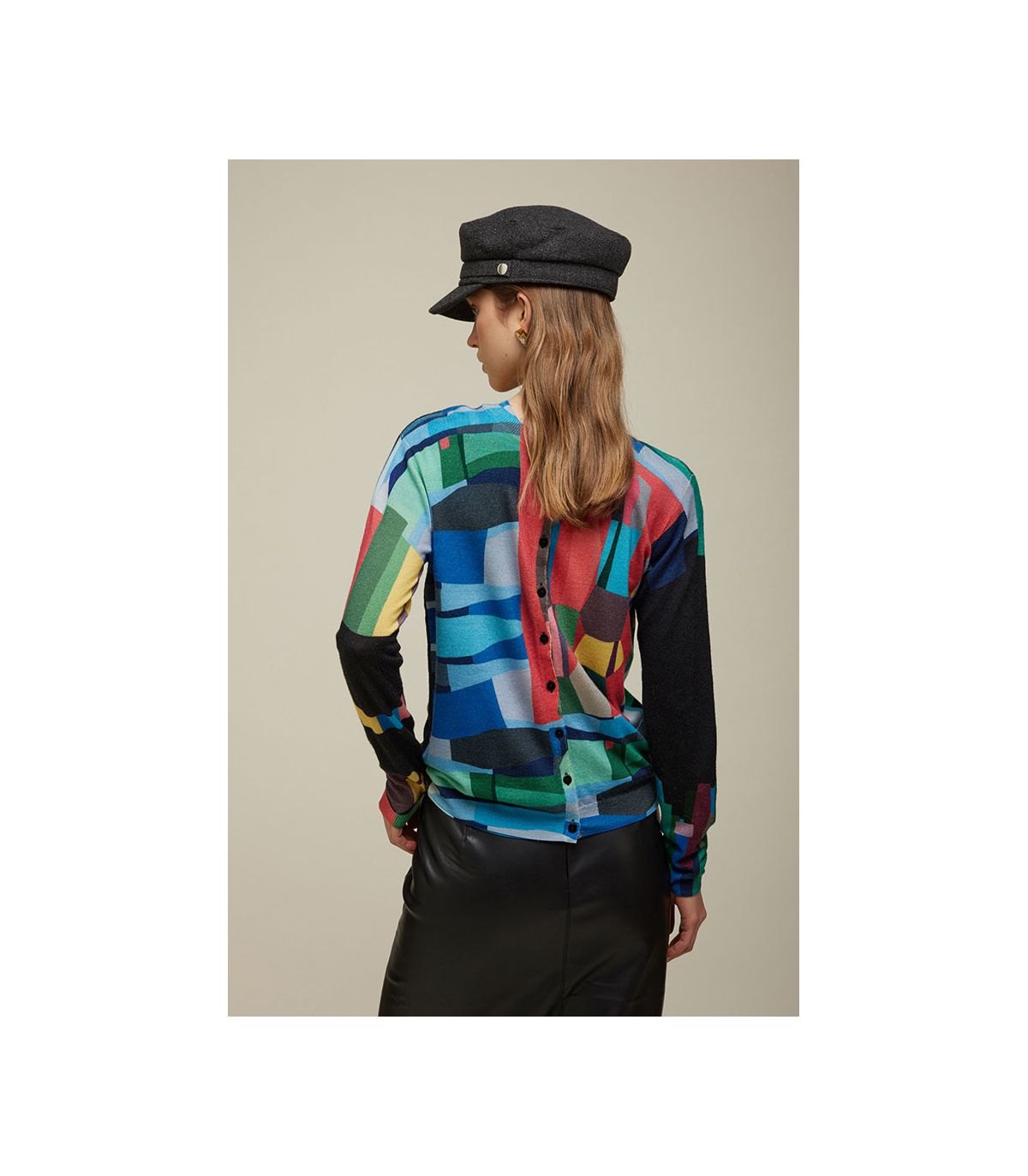 Cardigan reversibile con doppia fantasia digitale Pop e abbottonatura su entrambi i lati