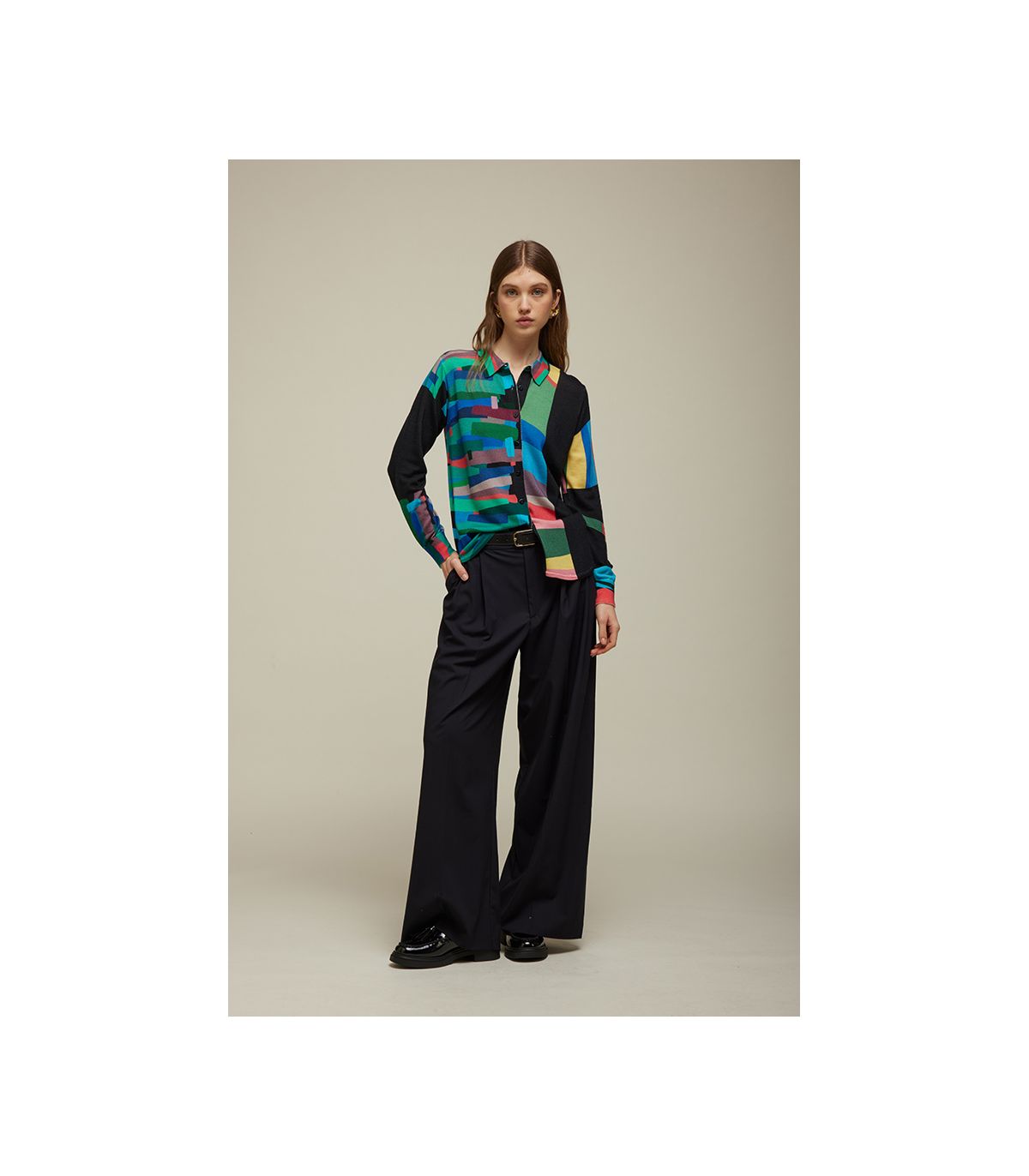 Camicia in 100% lana merino extrafine, soffice e leggera, con maniche lunghe e linea pulita. La stampa digitale Pop aggiunge energia e colore, trasformando un capo essenziale in una proposta moda dallo stile contemporaneo. Con la sua vestibilità regolare, è perfetta per completare look quotidiani e raffinati.