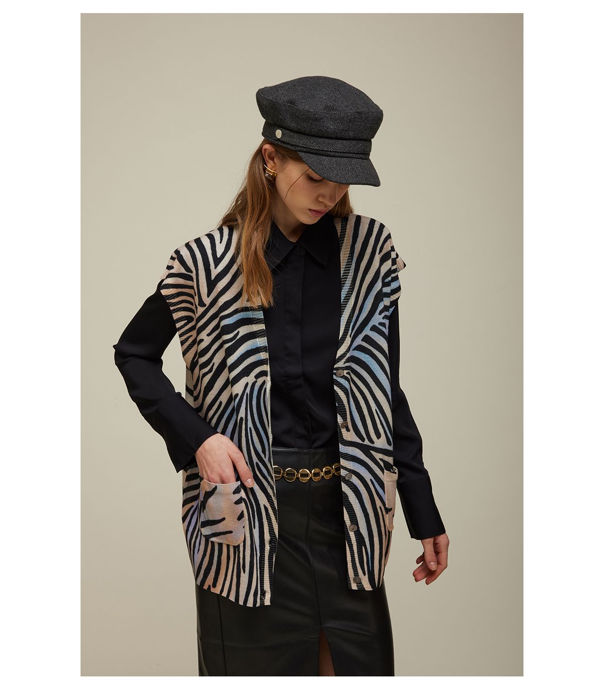 Gilet con abbottonatura centrale e fantasia digitale Zebra
