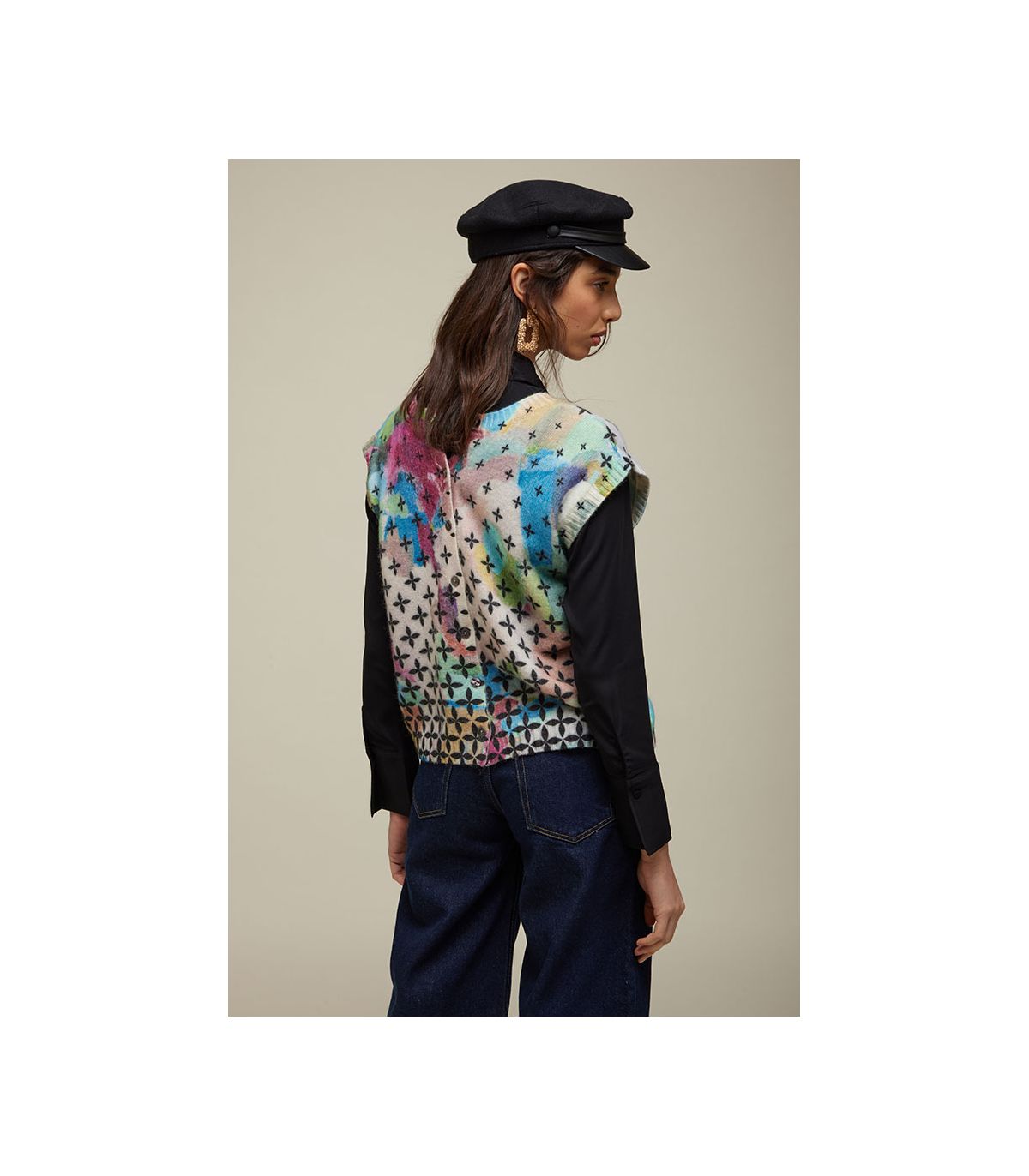 Gilet in misto alpaca con doppia stampa digitale intercambiabile