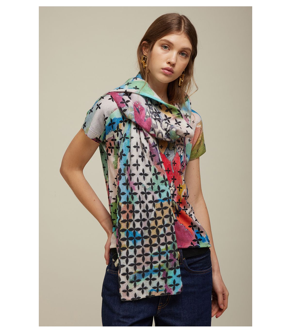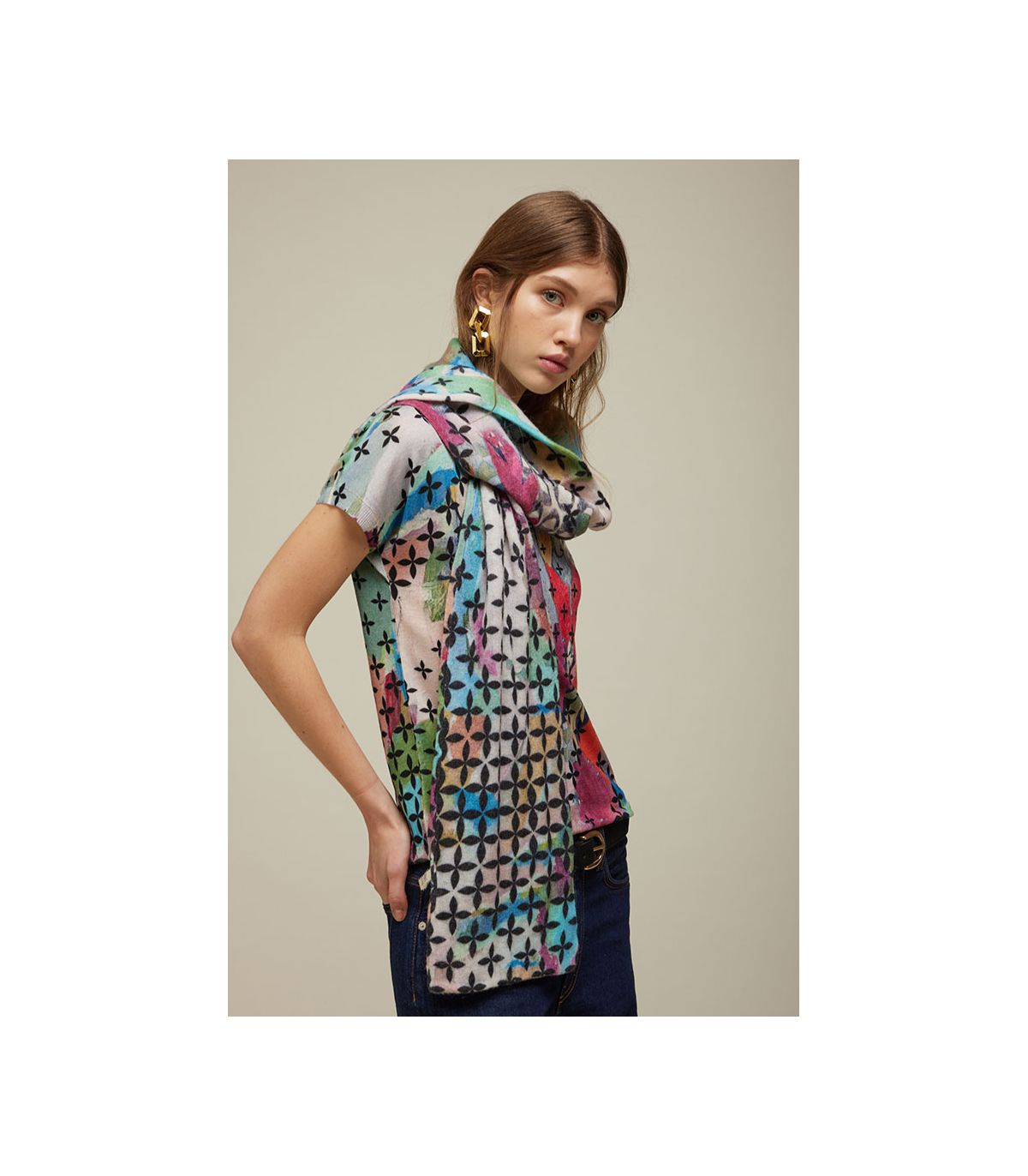 Stola in maglia con stampa digitale dal carattere contemporaneo
