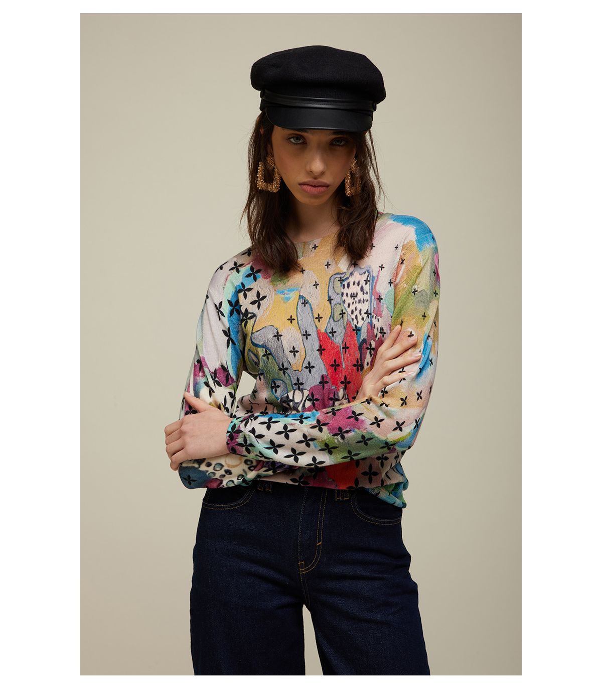 Pull girocollo in lana merino extrafine con stampa digitale Double Use