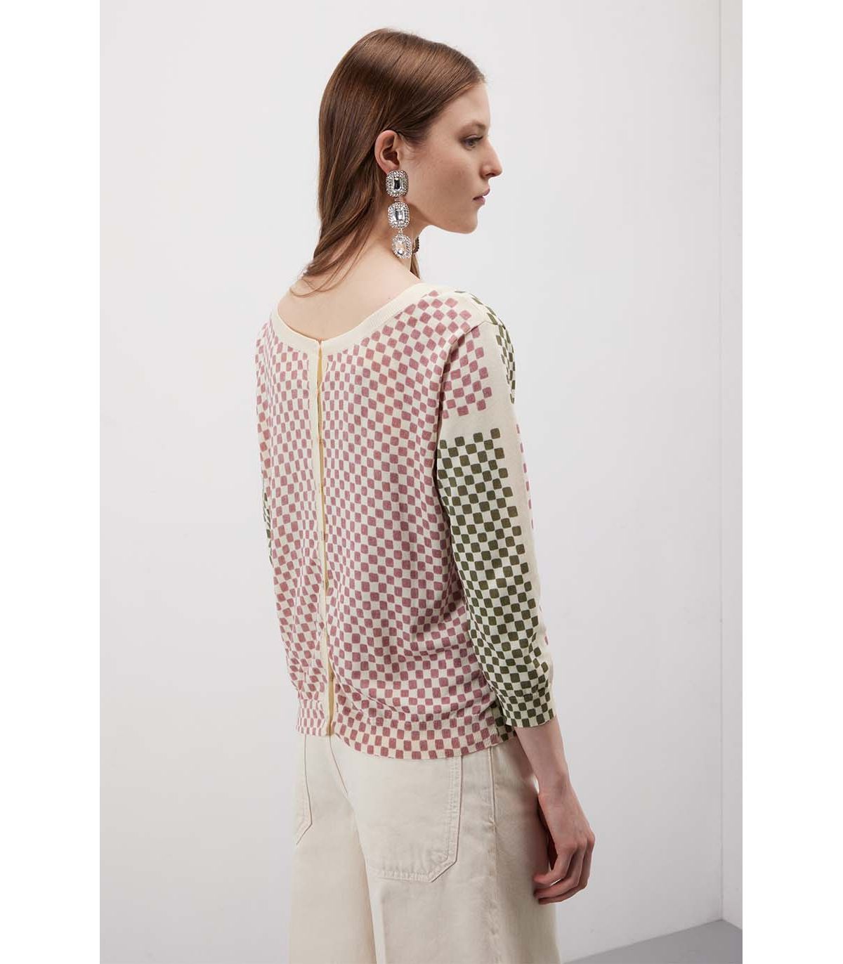 Grafica netta e costruzione pulita definiscono l’insieme. Il pattern crea ritmo mentre il High Twist Cotton mantiene leggerezza e struttura. Indossato insieme è deciso, separato resta essenziale. Double use: per uno stile rilassato e contemporaneo.