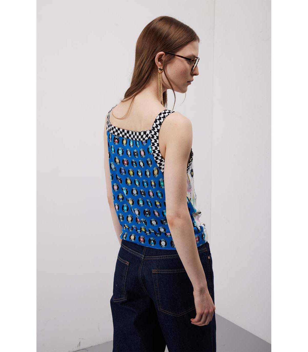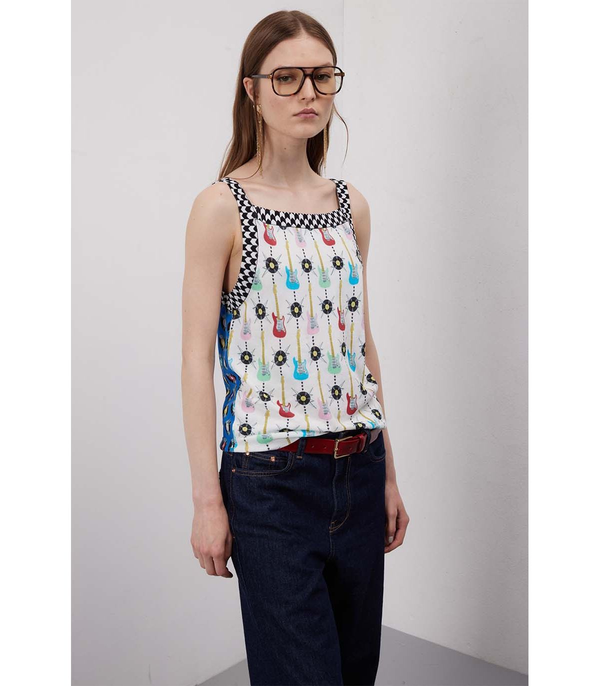Twin set coordinato composto da cardigan e top con stampa Rock. Il pattern crea continuità visiva tra i due pezzi. Il cotone High Twist dona struttura e definizione all’insieme. Double use: entrambi i capi sono reversibili per uno styling più personale.